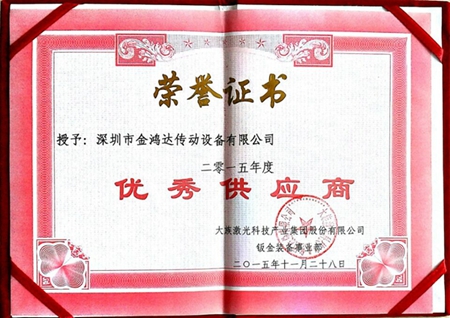 2015年11月28日大族激光邀请所有配件供应商参与他们一年一度优秀供应商评选大会,深圳市金鸿达传动设备有限公司《北机减速机》荣获大族激光2015年优秀供应商称号,北机减速机感谢大族激光对我司的肯定和支持,我们的努力只为为广大新老客户提供更好的服务和更优质的传动方案,持续为客户创造更大价值!