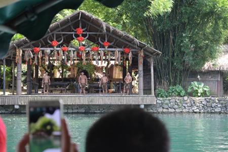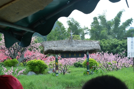 晋太元中,武陵人捕鱼为业。缘溪行,忘路之远近。忽逢桃花林,夹岸数百步,中无杂树,芳草鲜美,落英缤纷,渔人甚异之。复前行,欲穷其林。林尽水源,便得一山,山有小口,仿佛若有光。便舍船,从口入。初极狭,才通人。复行数十步,豁然开朗。土地平旷,屋舍俨然,有良田美池桑竹之属。