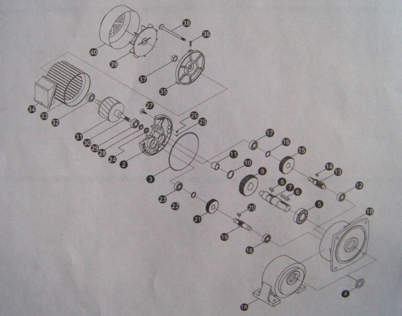 | 36 | 风罩螺钉 | 37 | 后盖油封 | 38 | 电机螺杆 | 39 | 风叶 | 40 | 风罩 |