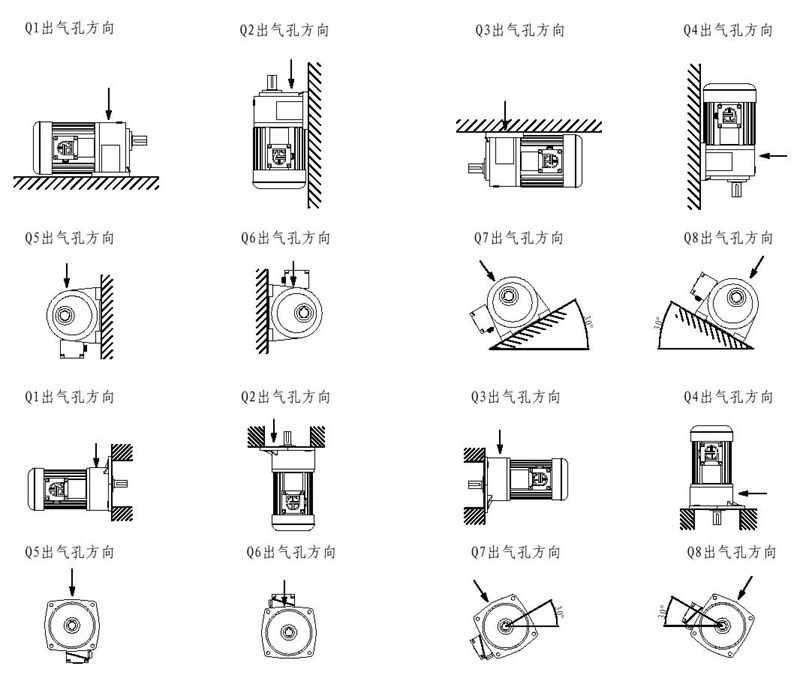 齿轮减速马达安装位置及透气